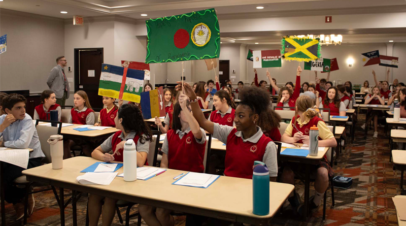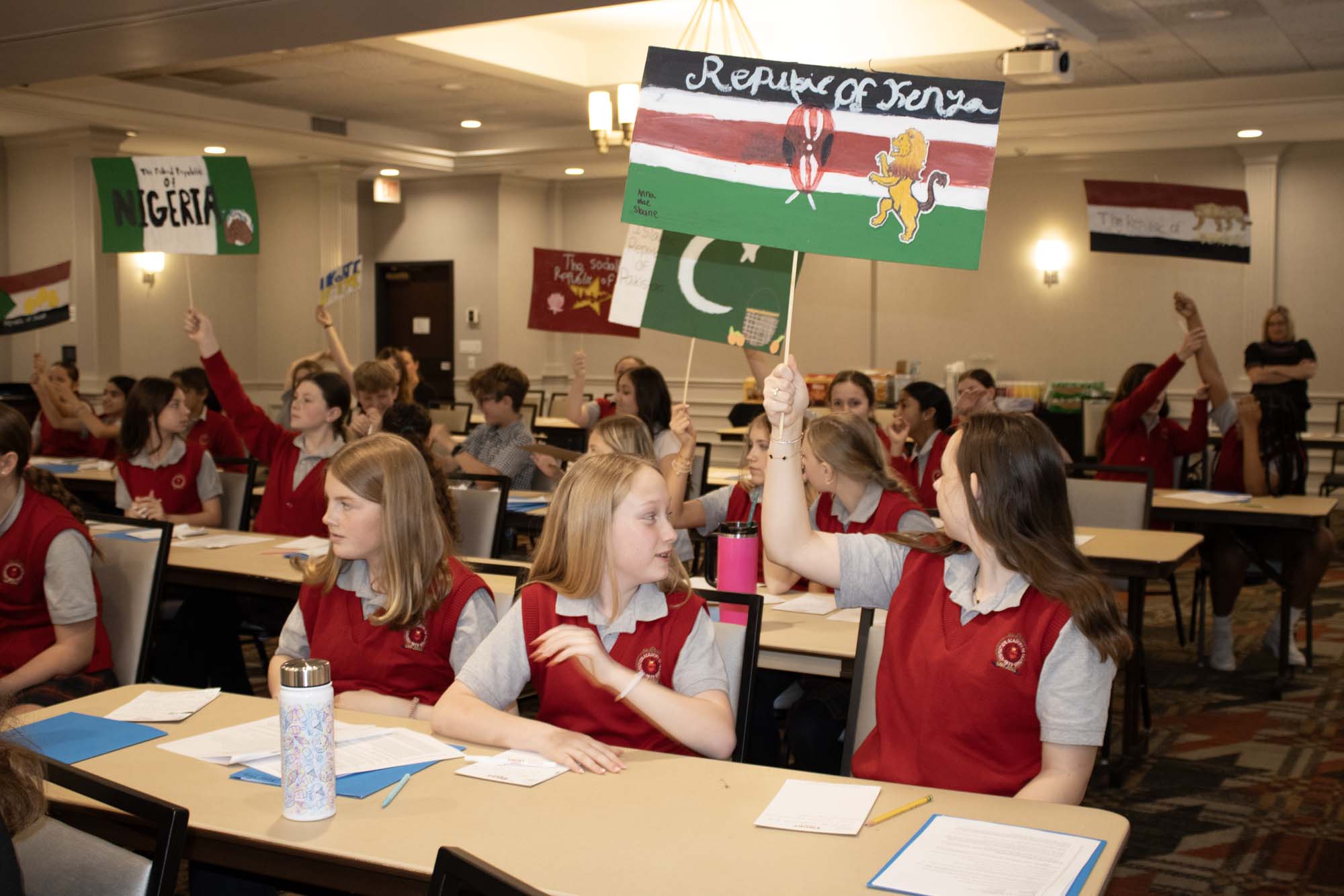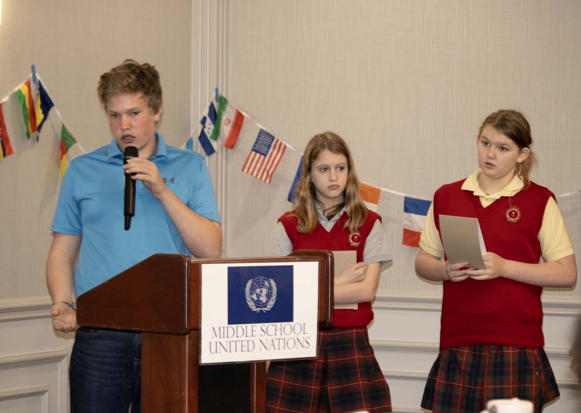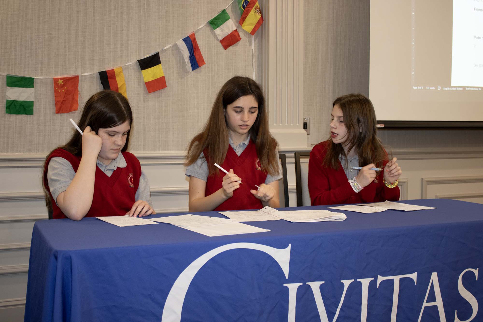 Here are photos from the April 10 Middle School Model UN Session. We had students join us from Crestview Middle and the St. Louis Home School Network. Click an image to see the full size version. To see the resolutions they discussed, please click here.