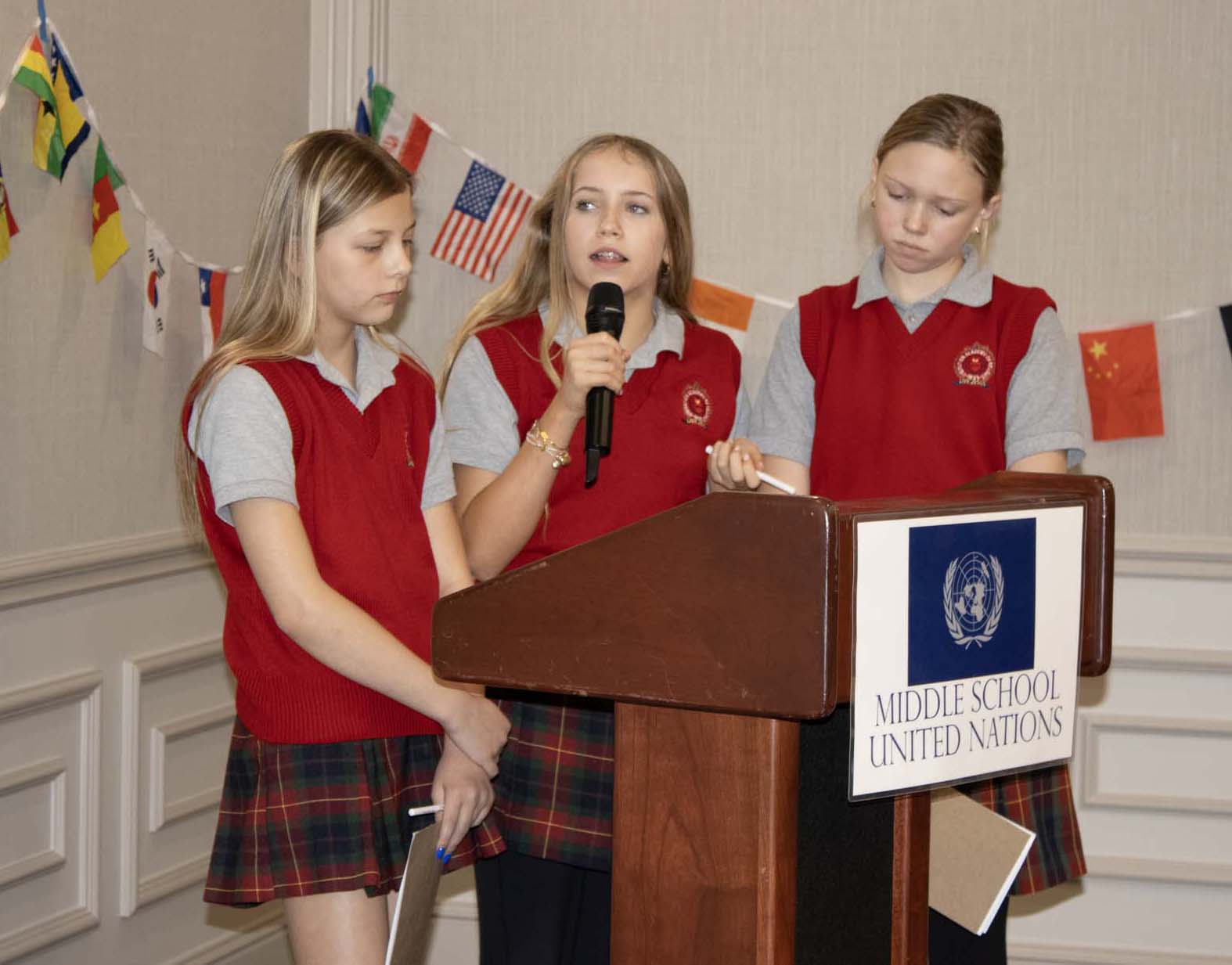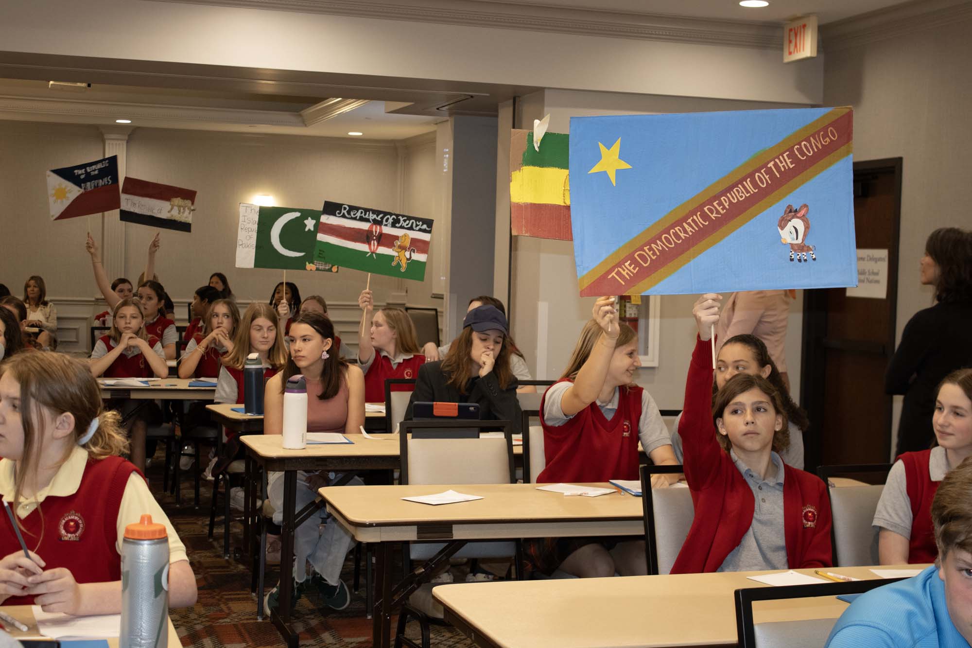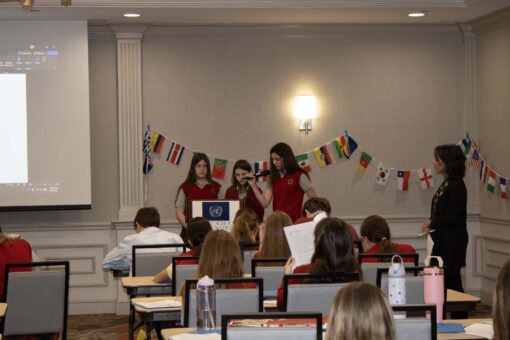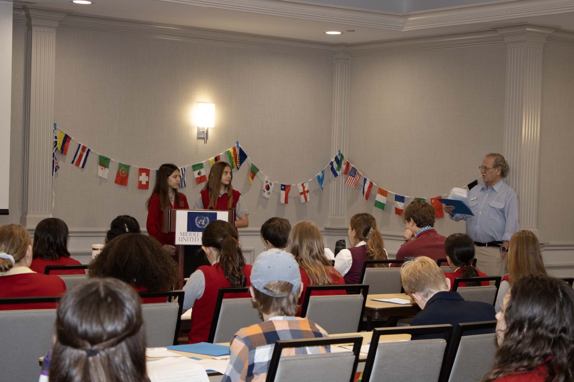 Here are photos from the April 10 Middle School Model UN Session. We had students join us from Crestview Middle and the St. Louis Home School Network. Click an image to see the full size version. To see the resolutions they discussed, please click here.