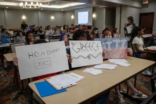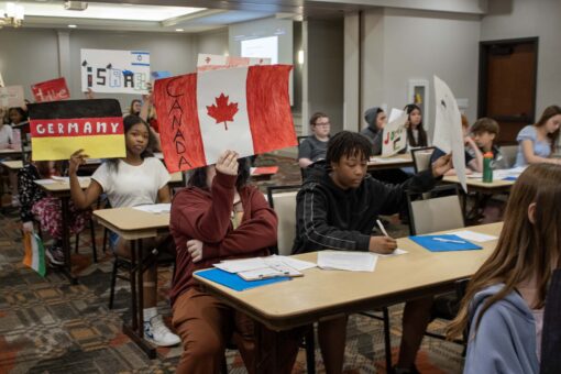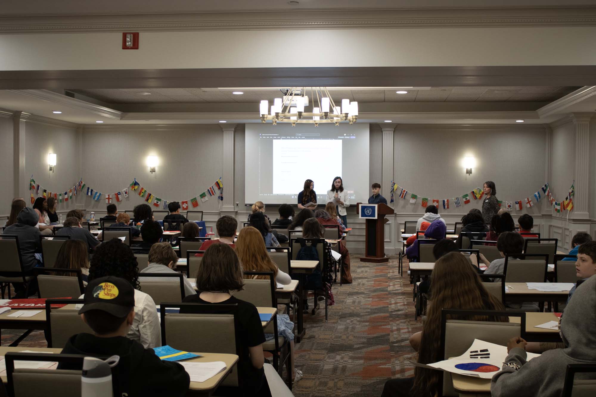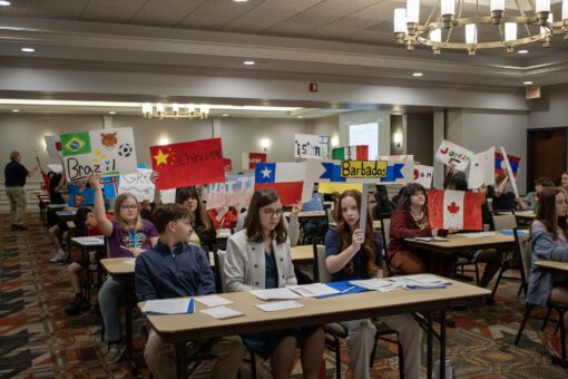 Here are photos from the April 15 Middle School Model UN Session. We had students join us from Christ Prince of Peace, Hoech Middle, and Ritenour Middle. Click an image to see the full size version. To see the resolutions they discussed, please click here.
