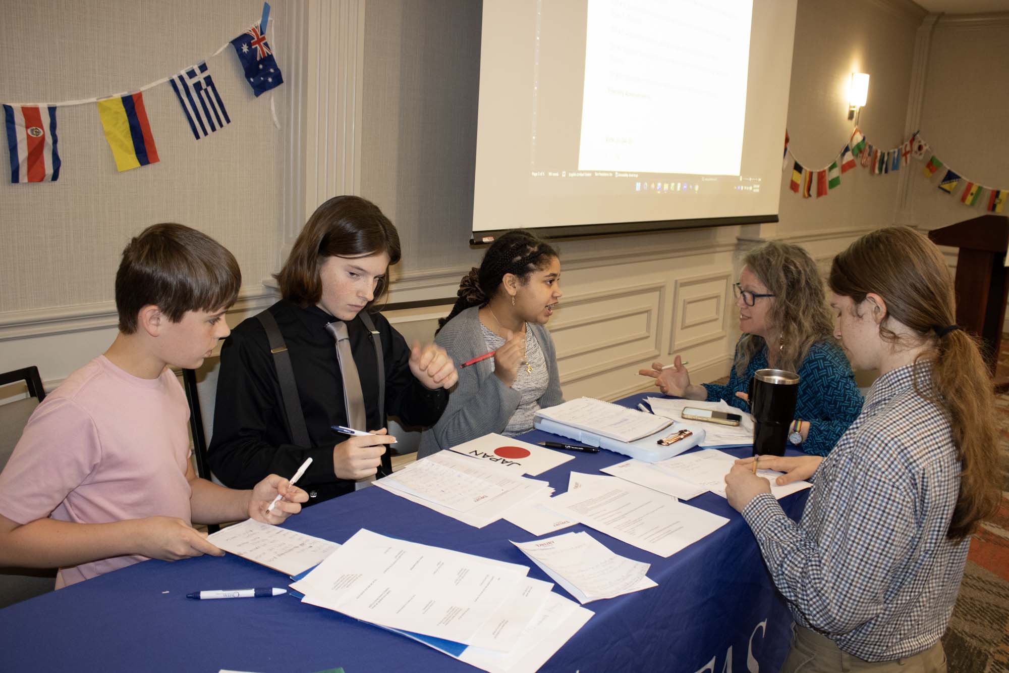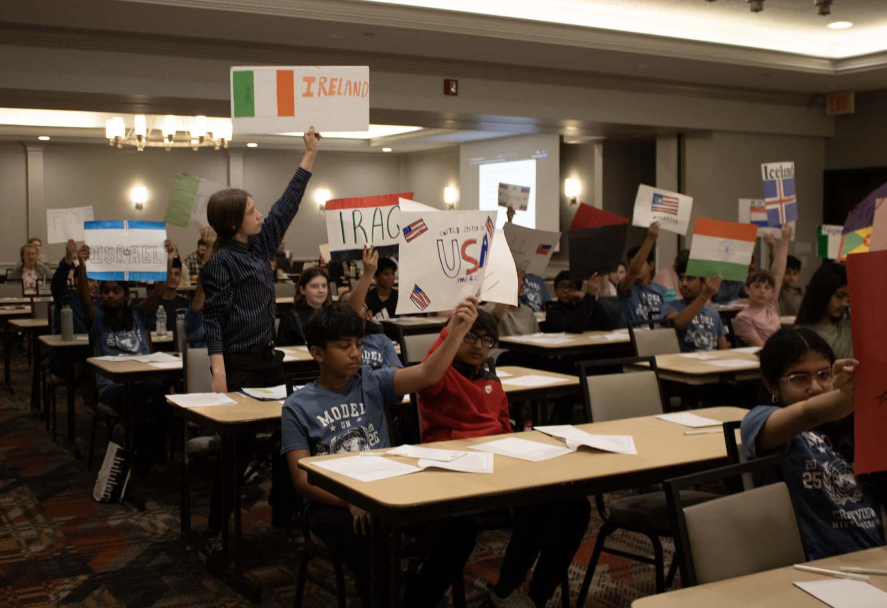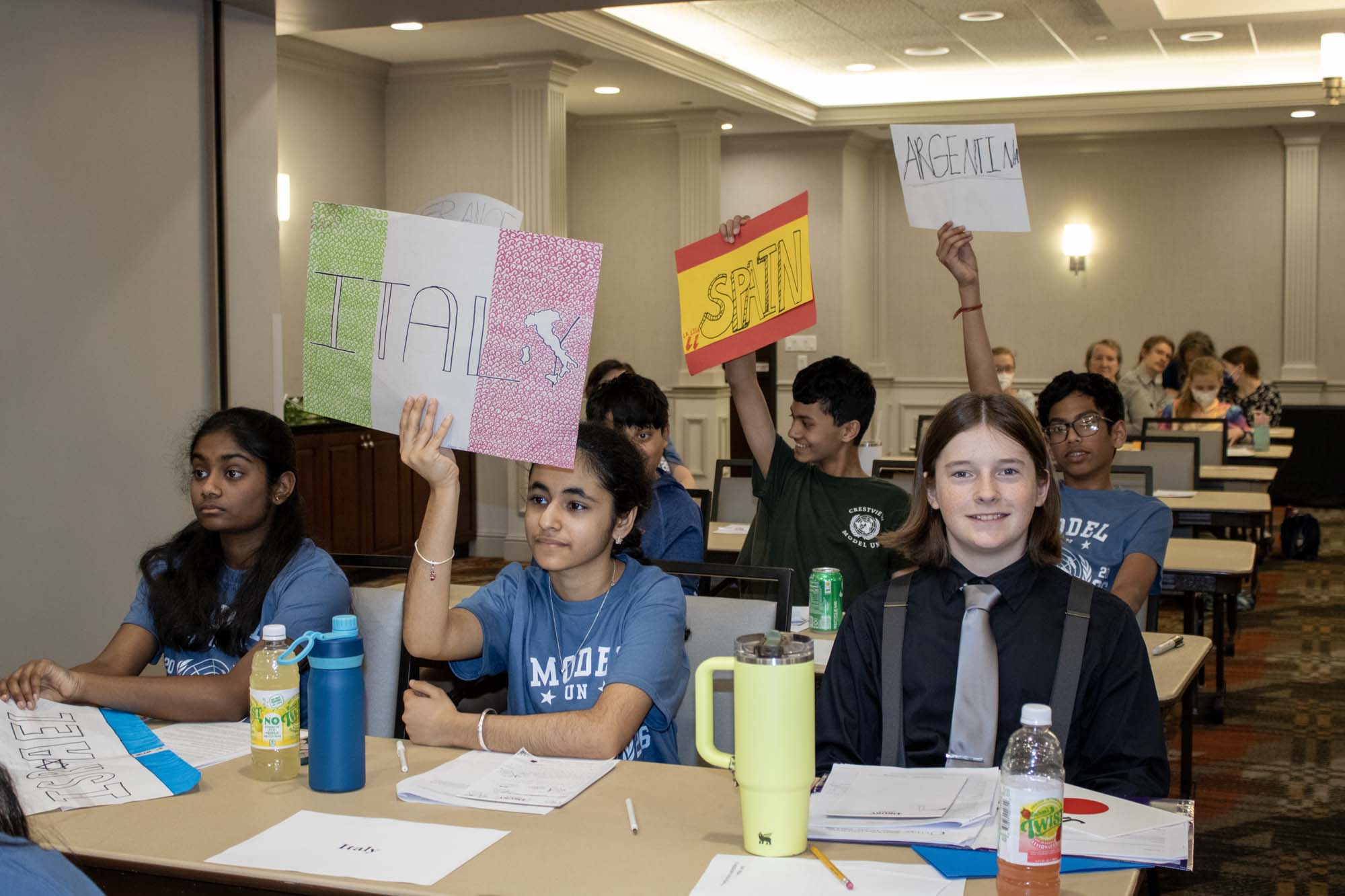 Here are photos from the April 2 Middle School Model UN Session. We had students join us from Crestview Middle and the St. Louis Home School Network. Click an image to see the full size version. To see the resolutions they discussed, please click here.